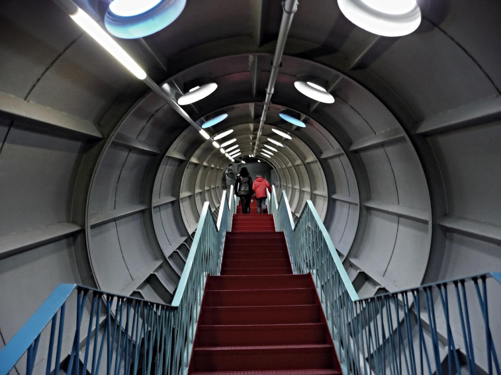 Para llegar a la esfera superior, primero vas recorriendo las esferas inferiores siguiendo el circuito establecido. Como en la mayoría de los museos de Europa, el recorrido está predefinido: avanzás por pasarelas metálicas, subís por escaleras entre esferas y vas pasando por diferentes salas antes de llegar nuevamente a la planta baja, donde finalmente tomás el ascensor.